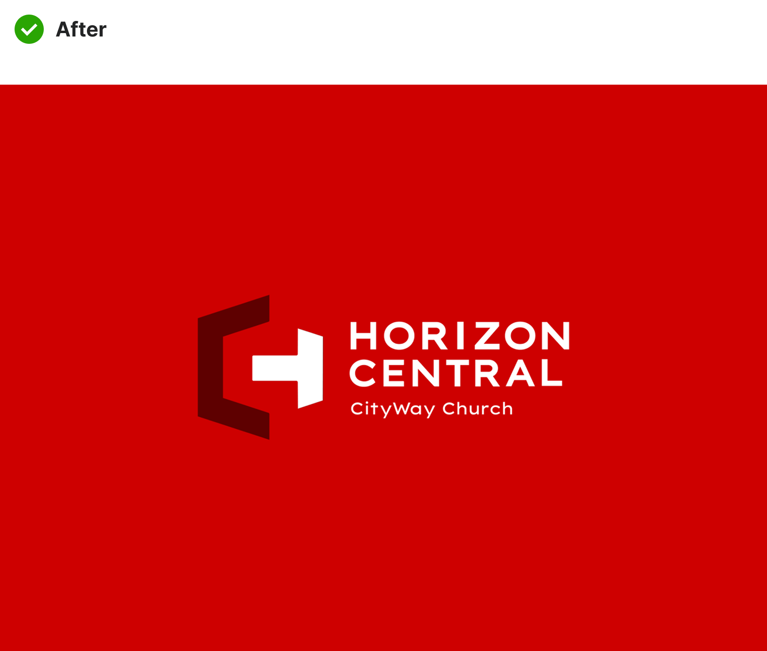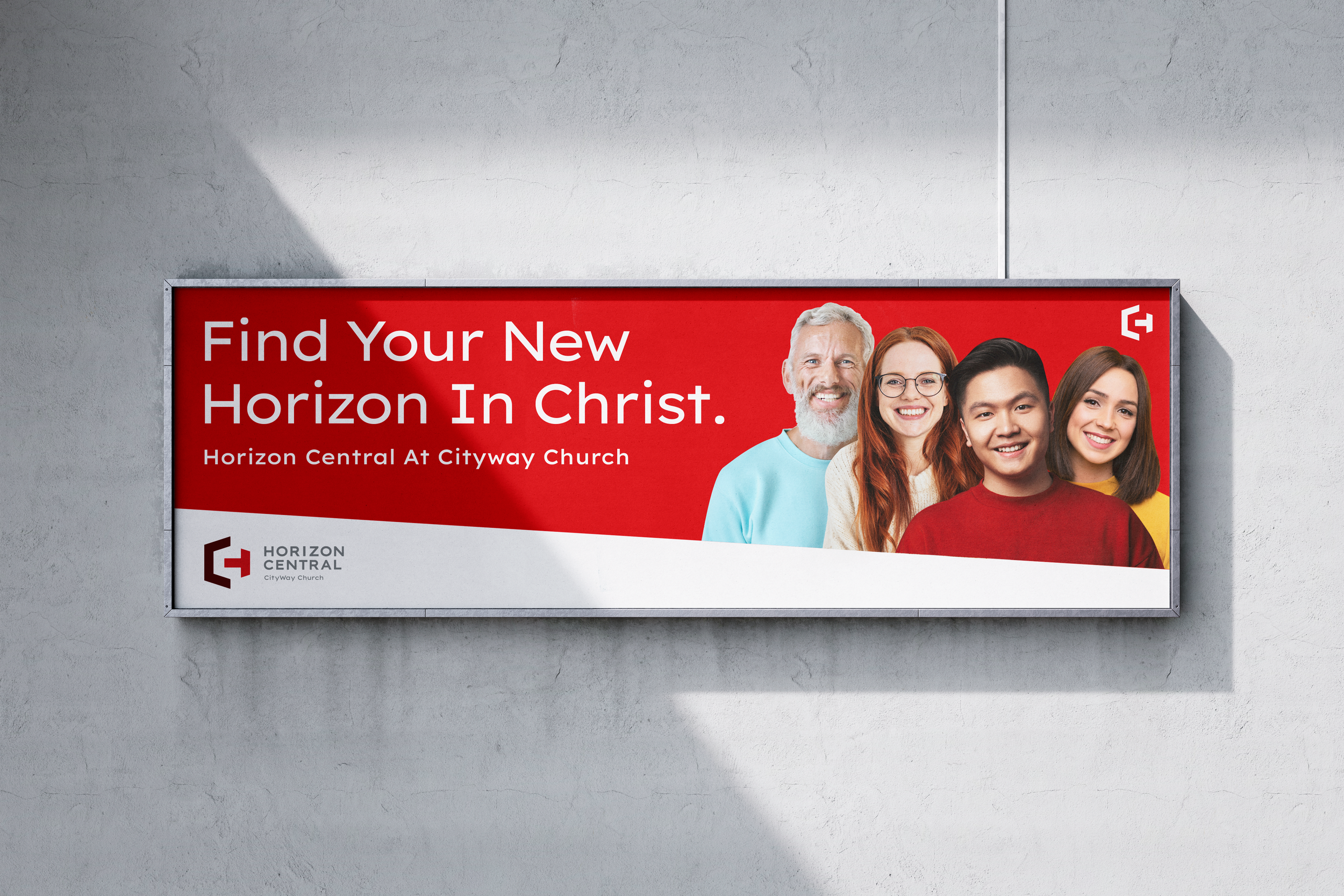 Horizon Central’s former identity lacked clarity and energy—misaligned with the vibrant, forward-thinking spirit of the church. The refreshed mark simplifies the message while injecting modernity and strength. Designed to reflect momentum, warmth, and place, the new look positions Horizon as a cornerstone in the CityWay community.