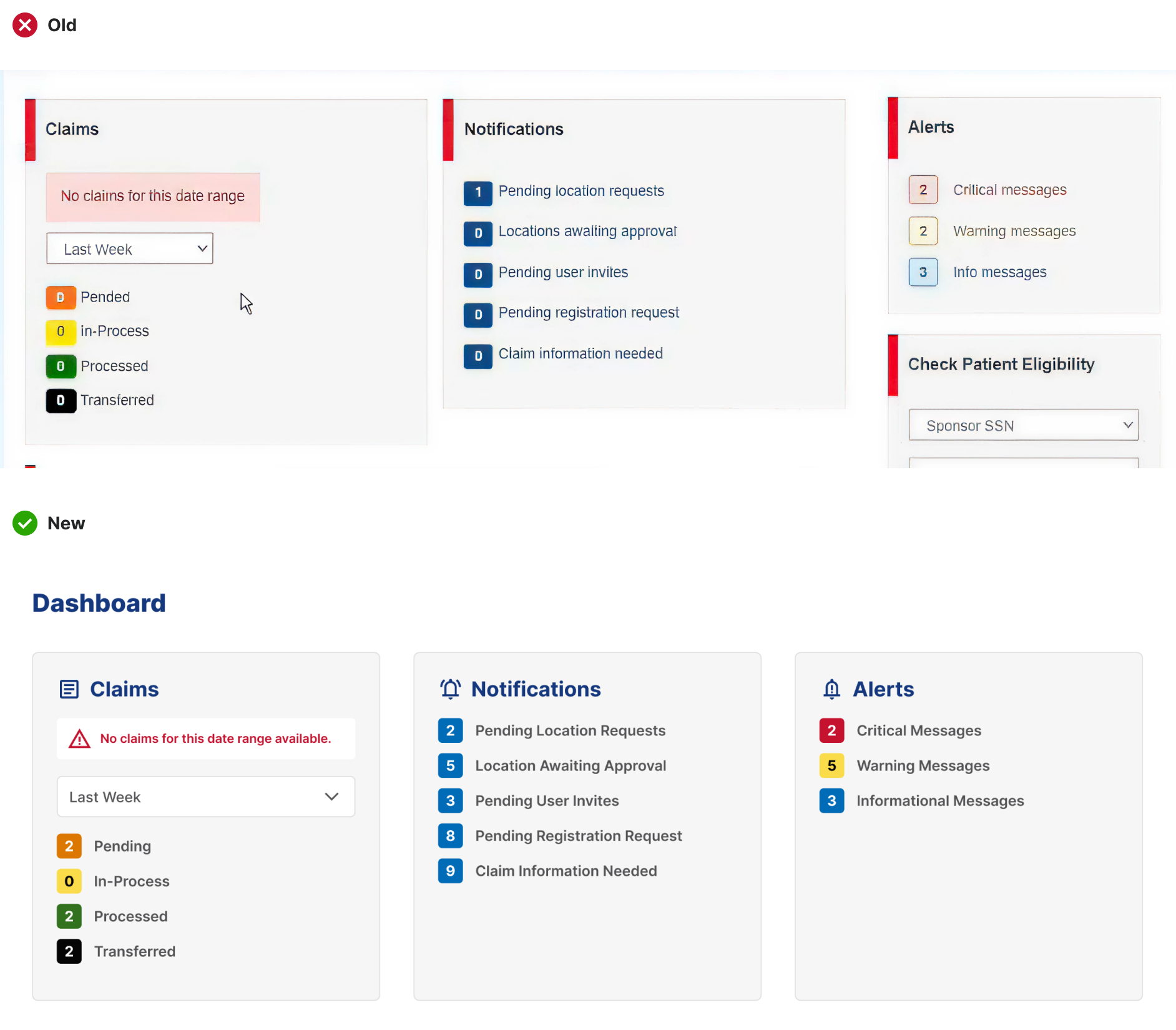 Created a more intuitive claims section with clearer statuses and progress indicators, making it easier for users to track their claims at a glance.