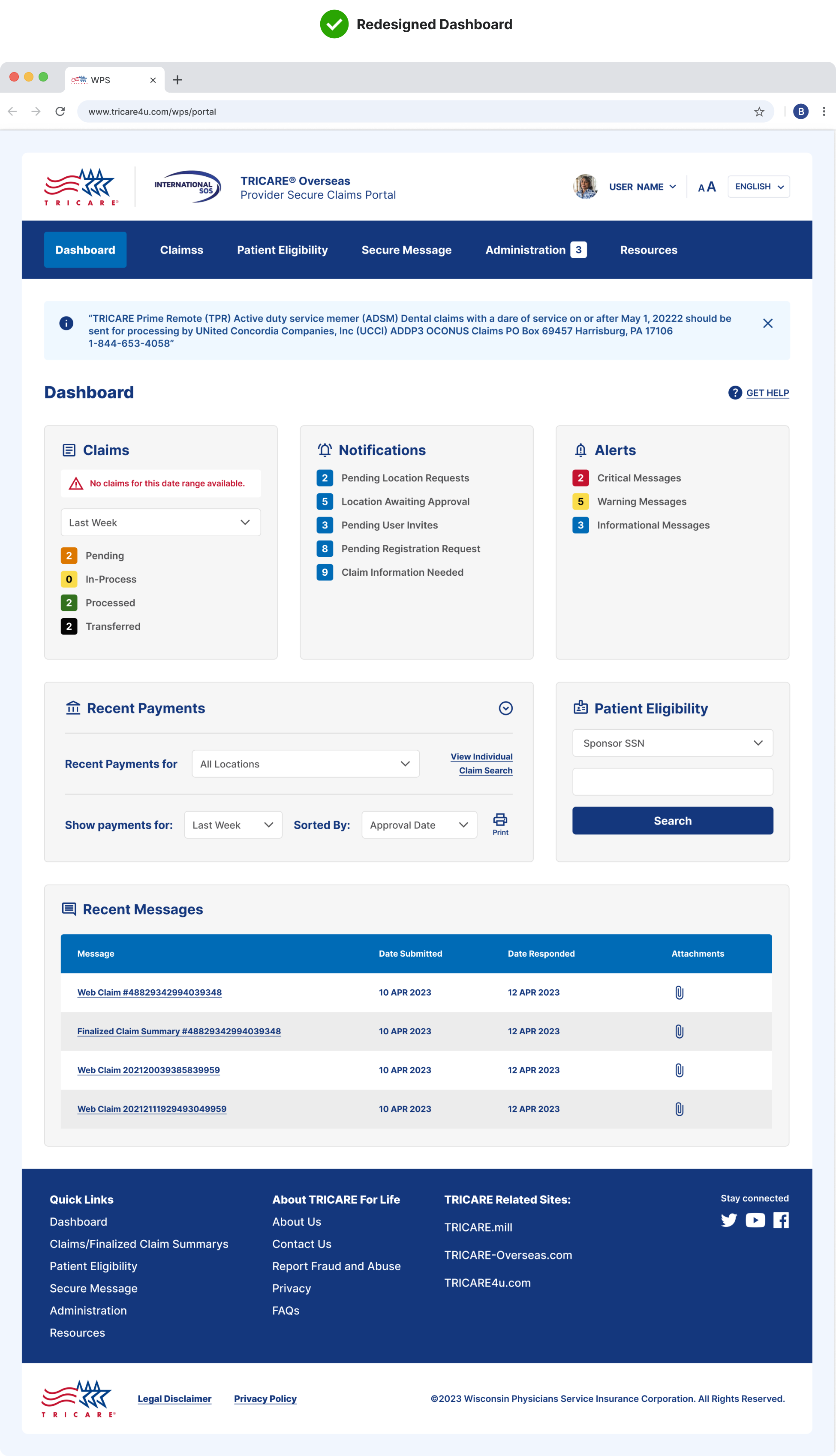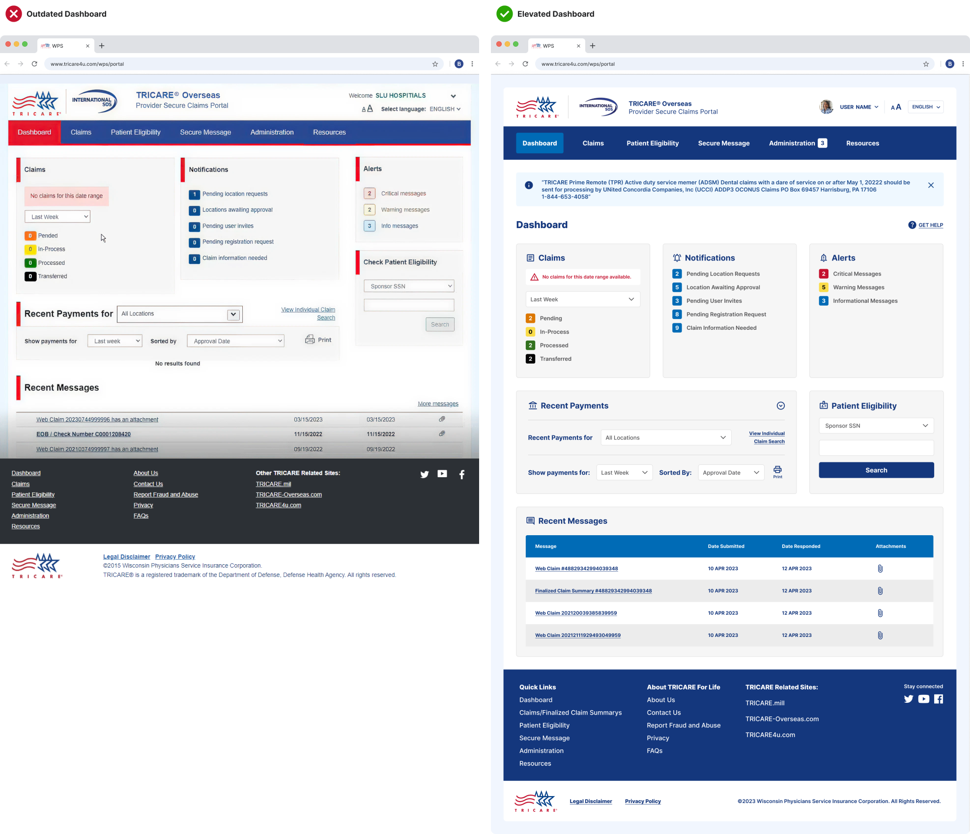 The updated portal enhanced usability, improved access to critical information, and provided a more seamless experience for beneficiaries navigating their Tricare for Life coverage.