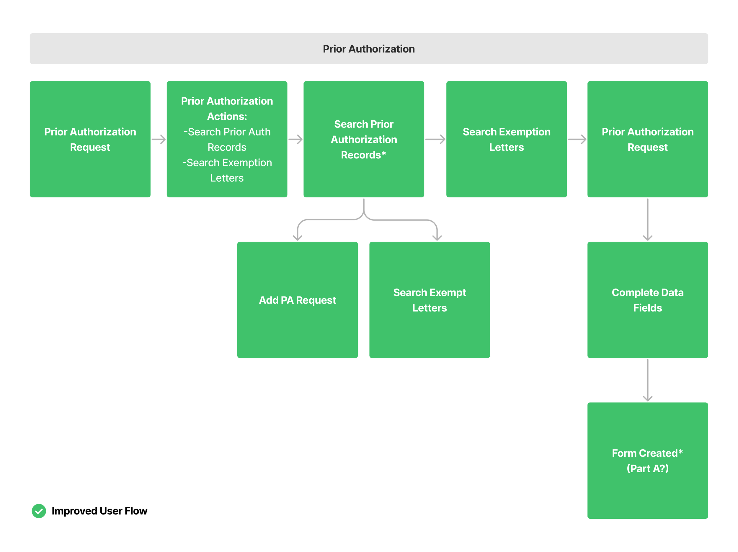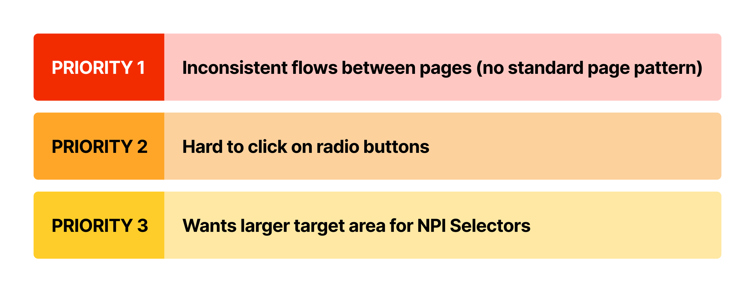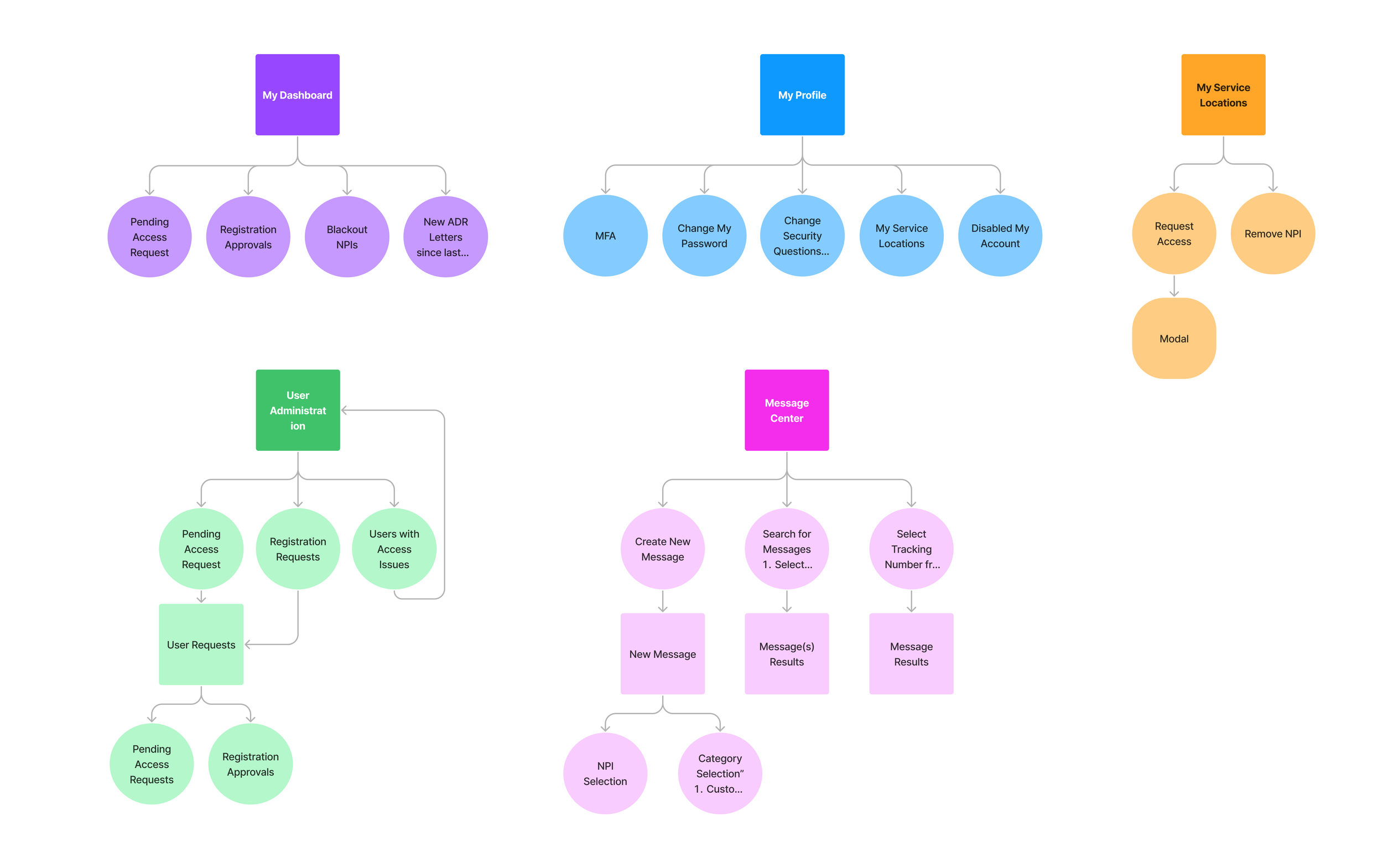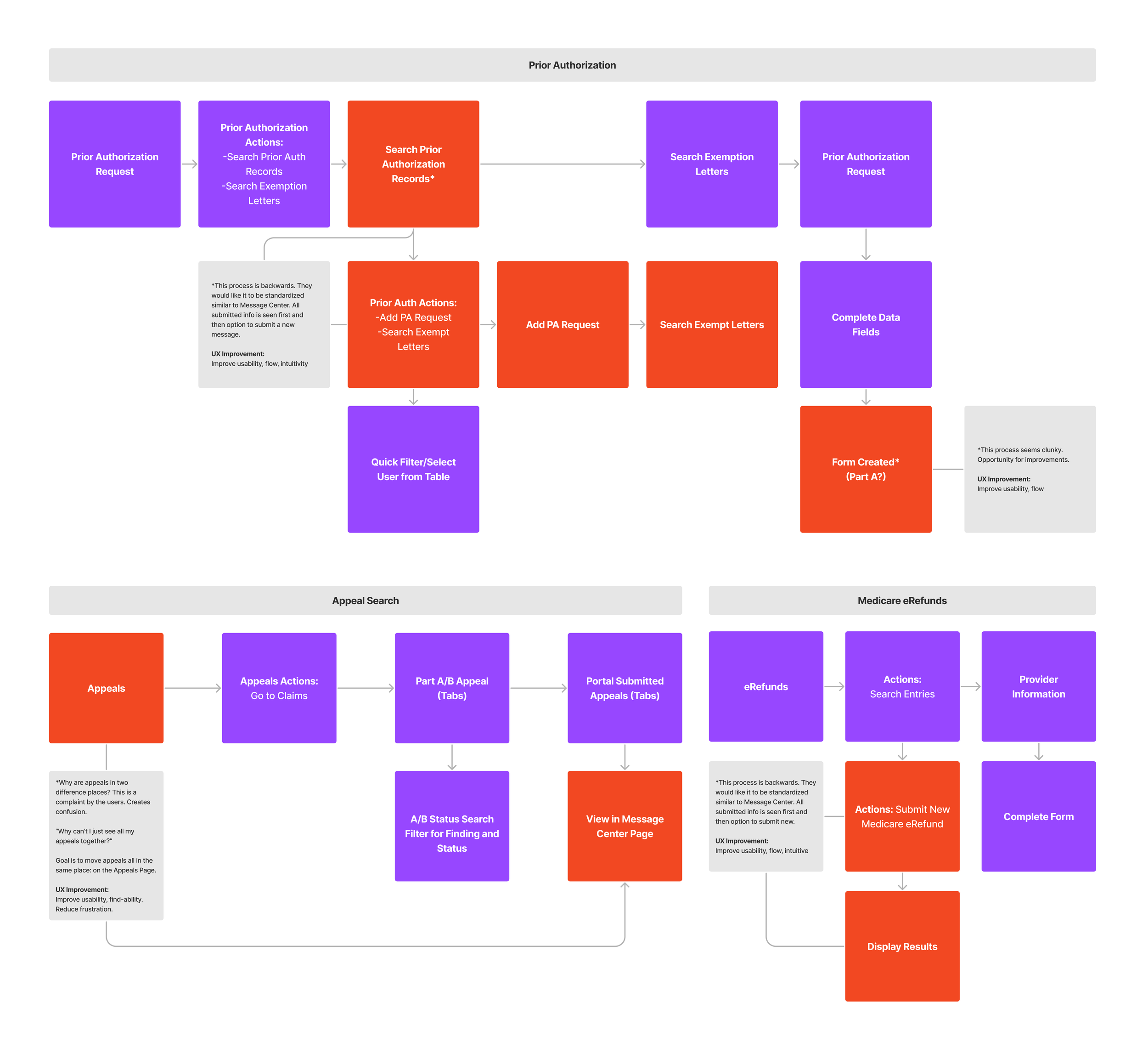 We mapped out task flows from the legacy portal to identify friction points within each workflow, focusing on tasks users needed to perform within the portal. We then compiled the major friction points from these workflows and cross-referenced them with internal user feedback from surveys and other collected data. Finally, I worked with the business analyst to prioritize these pain points, creating a clear, business-driven roadmap for improvement.