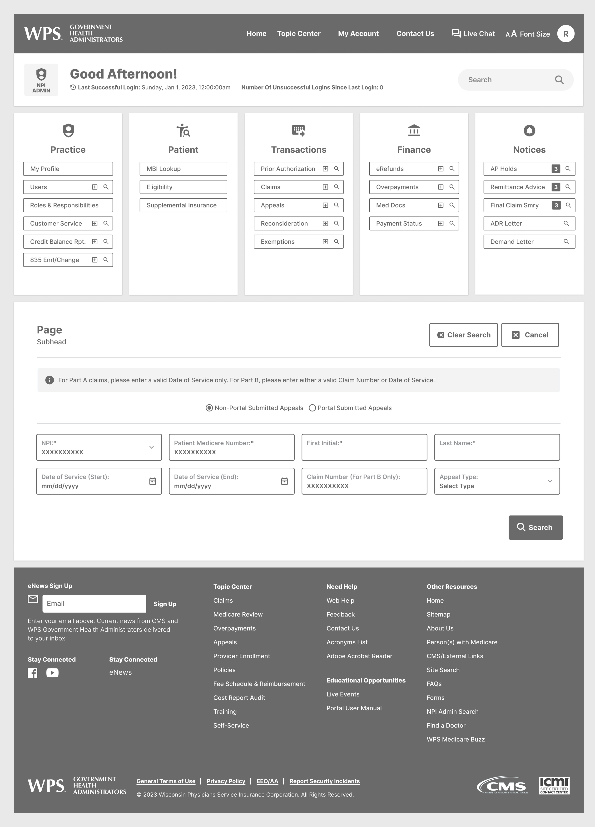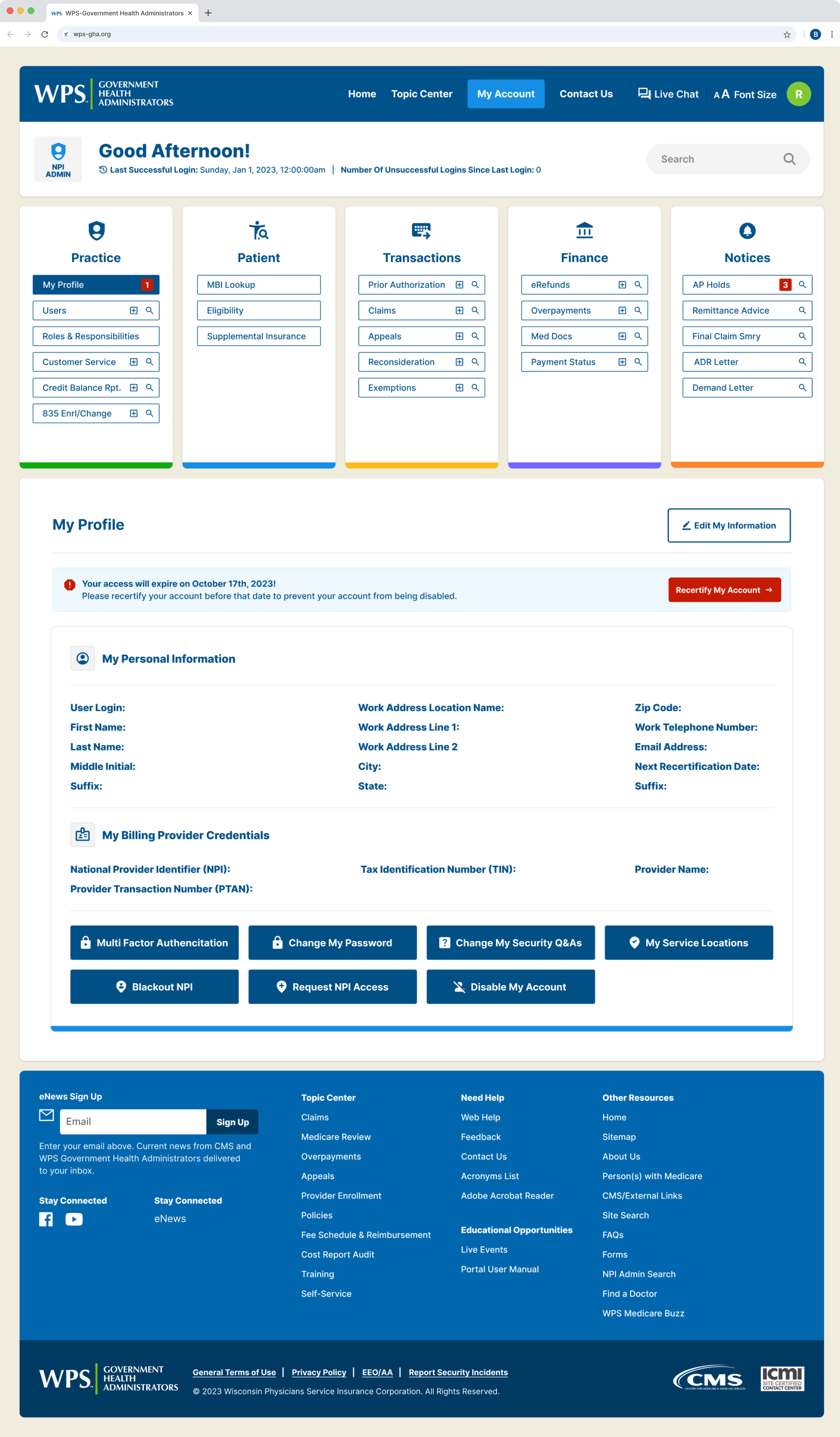 We reorganized WPS’s information architecture into a streamlined, user-first system. By grouping content into clear categories—Practice, Patient, Transactions, Finance, and Notices—the navigation reduces friction, improves findability, and supports faster decision-making.